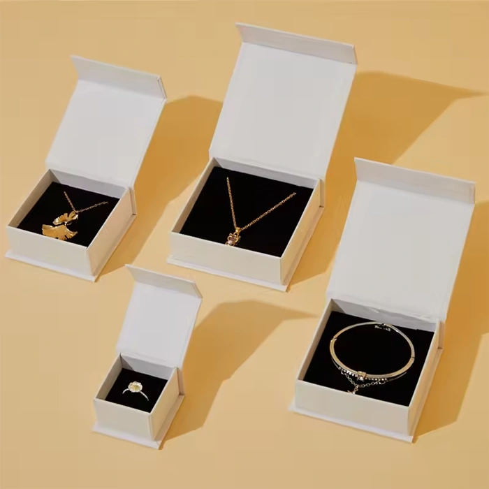 Showcase your brand with our high-quality jewelry boxes with logo for sale, the perfect complement to every fine piece of jewelry. These boxes are made from 100% eco-friendly and recyclable cardboard materials, yet provide for a sturdy base for your most precious of assets – taking away the hassle of packaging when you’re on the go. Completely customizable so you can feature your logo, colors and artwork on the packaging to provide an unforgettable unboxing experience that builds brand presence. Perfect for eCommerce and retail shipping, these affordable boxes create a sleek, professional look and protect your items during the shipping process. 100% reusable and available in various sizes and styles with a variety of finishes, they’re the perfect solution for every jewelry type that will intrigue your customers to buy!